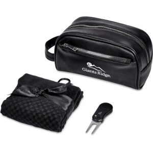 An Alex Varga golf tool and towel are packaged in an Alex Varga toiletry bag, to create an elegant set which is especially suitable for gifts or prizes at a golf day or event.