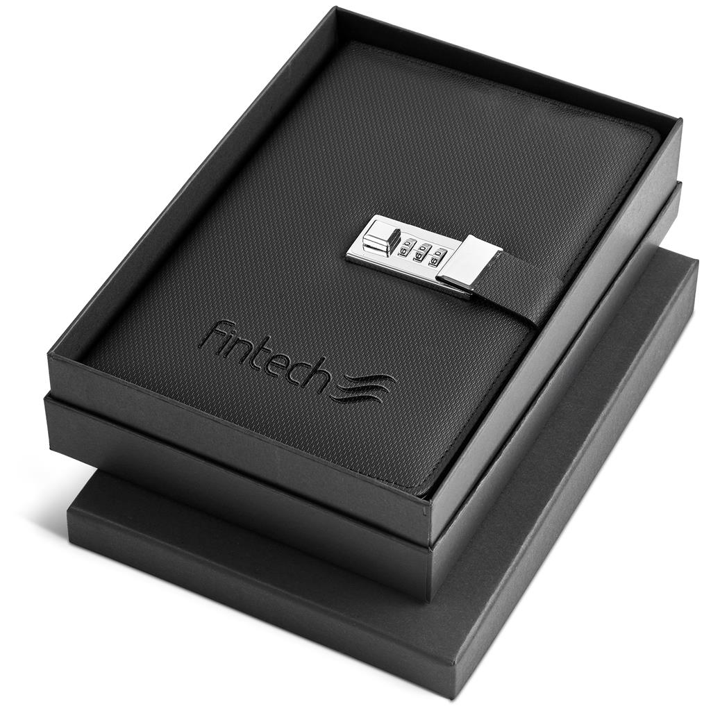 Notebooks are an essential tool in our daily lives – often used to record information we would prefer to keep confidential. The Alex Varga Chapman Notebook features a 3-digit combination lock, enabling the owner to prevent easy access to its contents. The set also includes an extra refill Notebook, packaged together with the main notebook in a black Alex Varga presentation box.