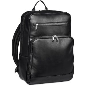 The combination of durable luxury PU with gun metal trims and outstanding styling makes this laptop backpack a superior choice.