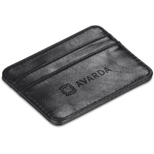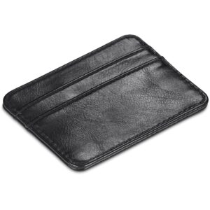 A slim and elegant card wallet made from luxury, soft PU fabric. It features four card slots and a centre pocket for cash. The RFID protection lining prevents unauthorised scanners from reading or recording information from the chips in your cards.