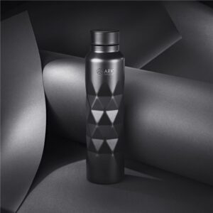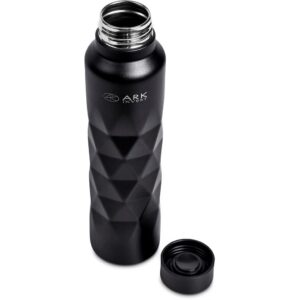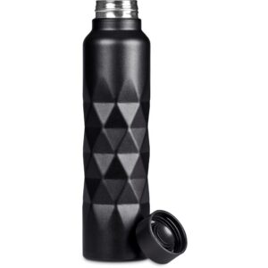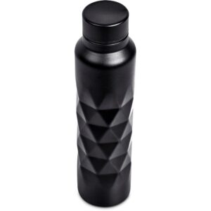 A lightweight but durable single wall stainless steel water bottle with a matte, powder-coated finish. It features a moulded diamond pattern design, with the space above it available for the branding of your logo. Branding is particularly effective by laser engraving, as it reveals the shiny silver stainless steel beneath the coating.