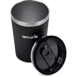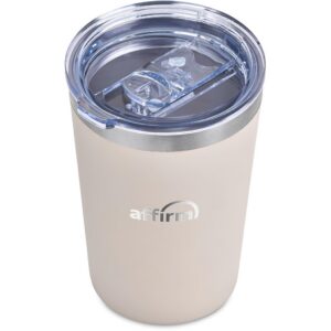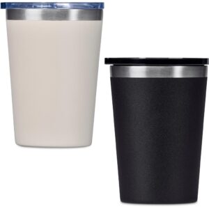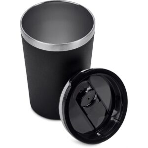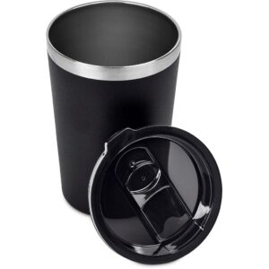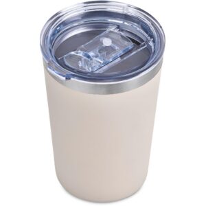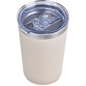 The double-wall stainless steel, vacuum construction of this tasteful tumbler will keep liquids hot or cold for hours. The simple, clean design results in a tumbler that fits snugly in your hand and in the drinks holder of your car.