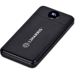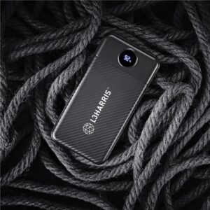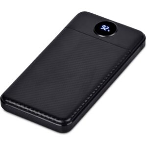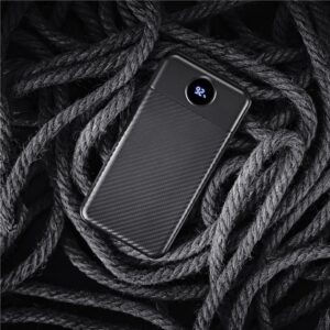Featuring a carbon fibre pattern design, and an LED display to help you keep track of how much power is remaining in your power bank.