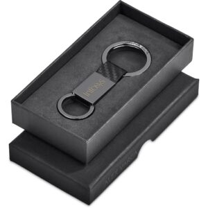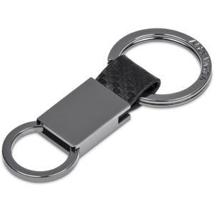 A carbon fibre-look PU is combined with gun metal finish zinc alloy parts to create this stylish keyholder. Consider pairing it with other items from the Alex Varga Lagarna collection.