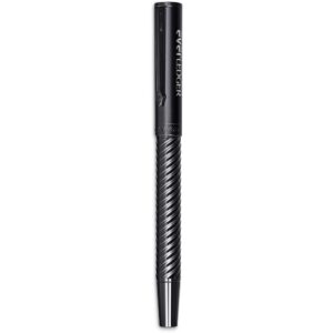 The Alex Varga collection features writing instruments with distinctive yet tasteful designs, and high quality refills and mechanisms. Each piece or set is presented in elegant packaging, making them gifts which are given with pride and confidence. This rollerball pen combines an embossed patterned lower barrel with a smooth, matte black upper barrel. It’s fitted with a free-flowing rollerball refill which has a minimum writing distance of 600 Metres. A spare refill is provided with this pen.