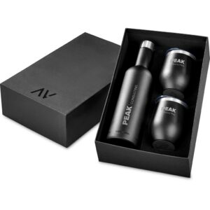 This elegantly presented vacuum drinkware set includes a 750ml bottle and two stainless steel tumblers. The bottle will keep water, wine or other liquids cold (or hot) for hours. The tumblers also have a vacuum insulation structure, maintaing the temperature of the liquid inside for longer and preventing condensation on the outside of the tumblers.