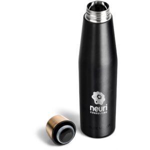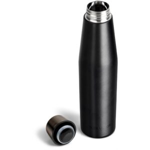 The Alex Varga Onassis Collection brings you a range of beautiful and useful products, with a touch of glamour added through the choice of materials and designs. This matte black vacuum bottle with a metallic lid will keep your water cold for hours.
