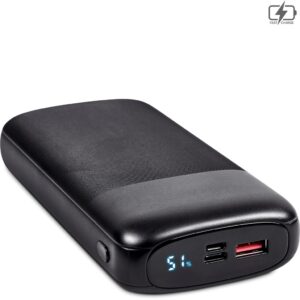 A fully charged 20,000mAh power bank should charge an iPhone 4 – 6 times from zero to full charge, before needing to be recharged itself. It should charge most modern Android phones 3 – 4 times from zero to full charge. If you’re using it for charging a tablet device, it should fully charge a large tablet once, or a small tablet twice. This 22.5W power bank can charge your phone or tablet faster than a standard 10W power bank. Featuring a matte, textured surface, with a smooth space to brand your company logo or message, finished off with shiny gun metal trims. The LED display will help you keep track of how much power is remaining in your power bank.