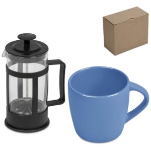 The eye-catching combination of a matte outer surface with a glossy inner finish makes this coffee mug an appealing option for branding your logo or message. It’s neatly packaged together with a 350ml coffee plunger in a natural kraft gift box. Just add ground coffee and hot water to the plunger to make yourself a satisfying mug of coffee.