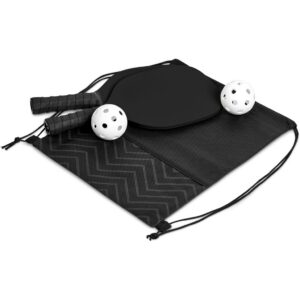 Enjoy some active fun in the sun with this good quality bat and ball set. The two bats are a nice weight, with a solid feel, and have comfortable grips. The set includes two durable white balls, to keep you playing for many Summers to come. The components are packaged together in a drawstring bag, which has space to add some other beach essentials, if you like.