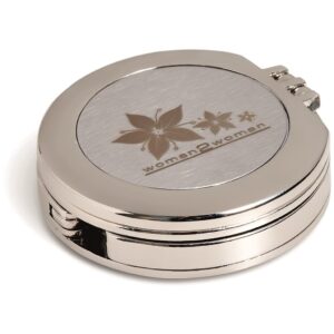 The Deity Bag Holder and Mirror is a dual-function tool made from zinc alloy with nickel plating. It includes both a cosmetic mirror and a fold-out hanger hook, great to hold your bag safely when dining out or at public activities.