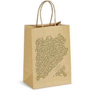 Packaging and presentation can make all the difference to the way your brand is perceived, or to how your message is received. Whether it’s a gift, a set, a goodie box or a practical pack of product, why not stamp it with your identity by using a custom printed gift bag? The kraft finish of this bag gives it a natural, genuine look and feel.