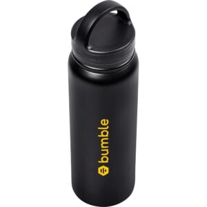The bottle base is made from strong and durable BPA-free stainless steel with a powder-coated finish. It has a double-wall vacuum construction, which ensures that liquids inside stay hot or cold for hours.