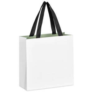 This small white gift bag, enhanced with contemporary colour inners, offers an elegant look and feel, making it a suitable choice for special occasions. A new design innovation eliminates the traditional back fold line, ensuring a seamless finish for a premium look.