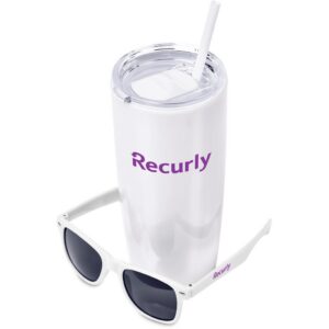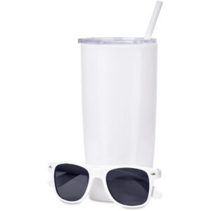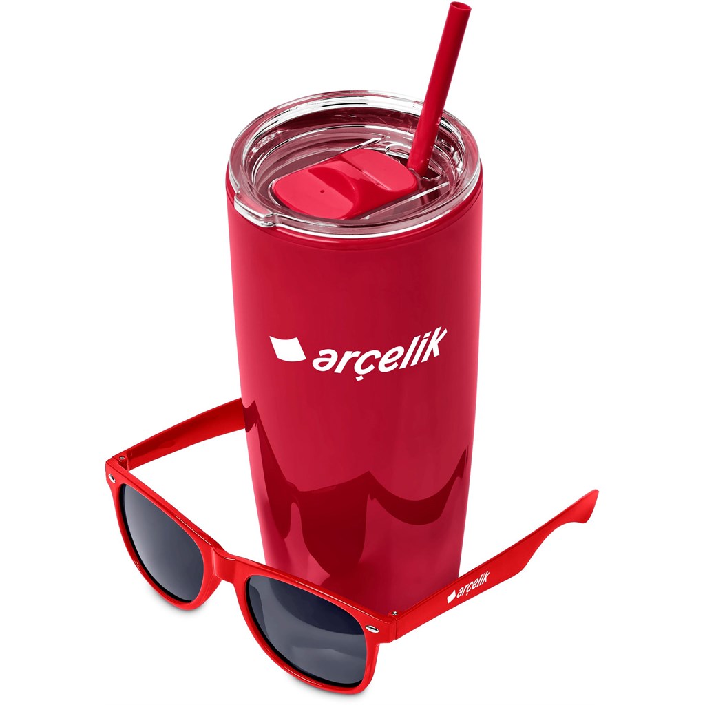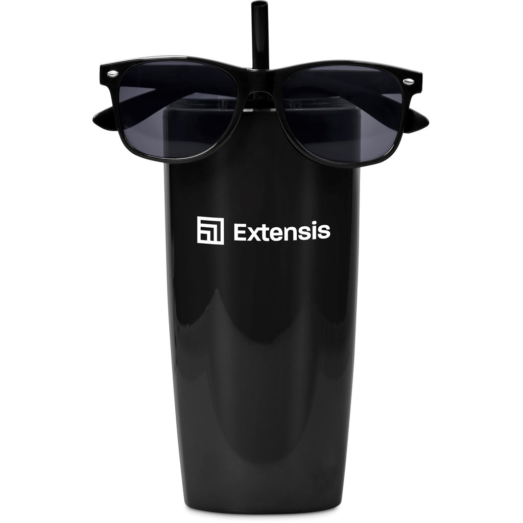 Stay fresh and hydrated as you soak up the Summer sun, with this fun combination of a double-wall tumbler with a matching pair of sunglasses. The sunglasses are packed into the tumbler, which is packaged in a natural kraft gift box.