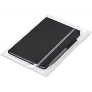 The matching matte textures of this notebook and pen, combined with the colour accents, make them perfect partners. The pouch is made from good quality PVC, and has a ziplock closure. It’s tactile and durable, and can be reused for storing folded documents, cards, notes and other odds ‘n ends.