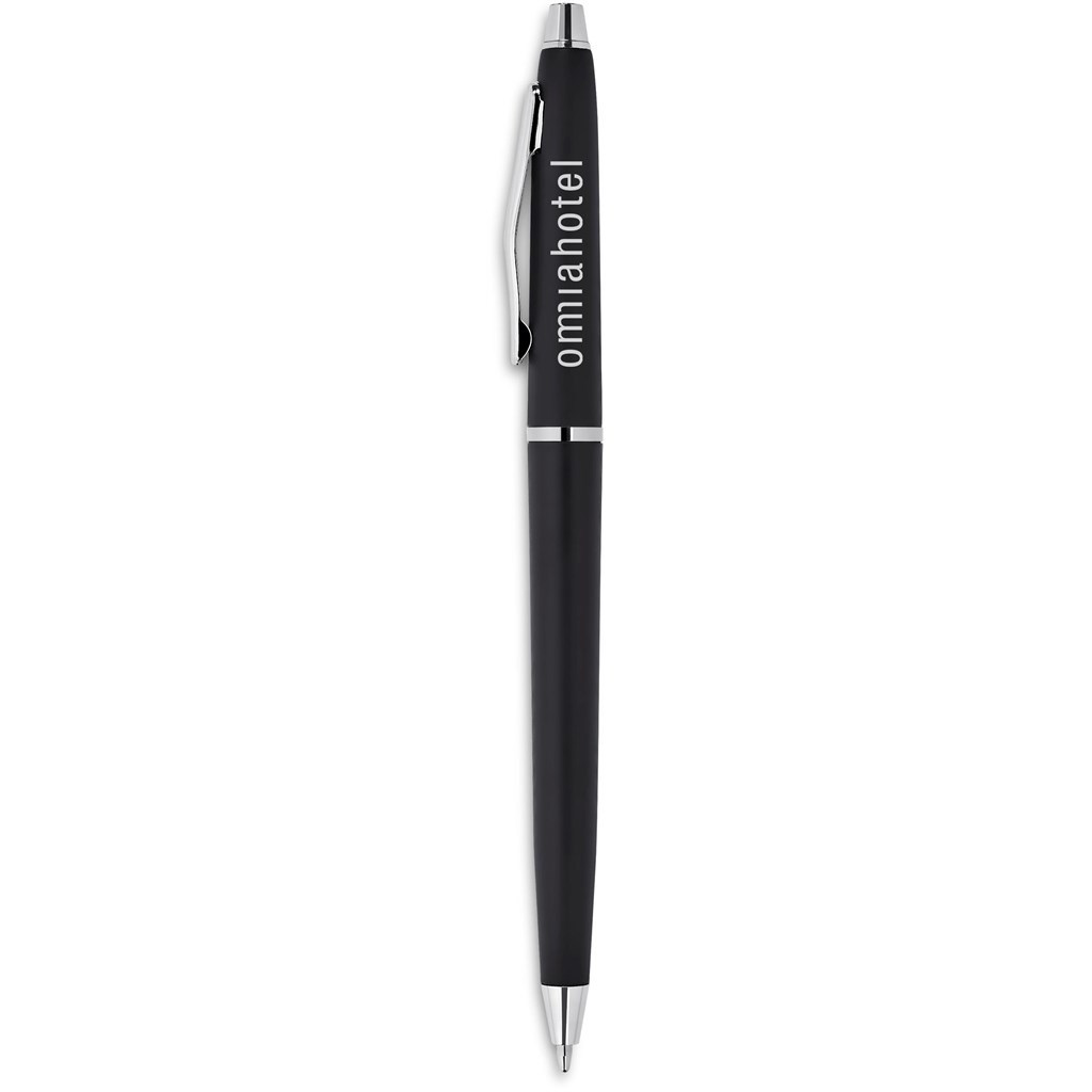 Stylish and lightweight affordable pen available in 4 awesome colours with silver trim accents. • with black German ink.