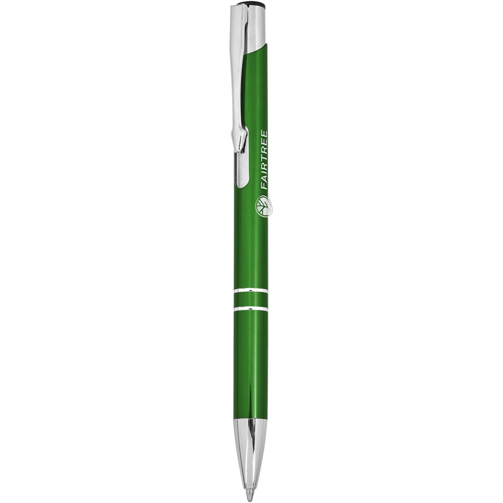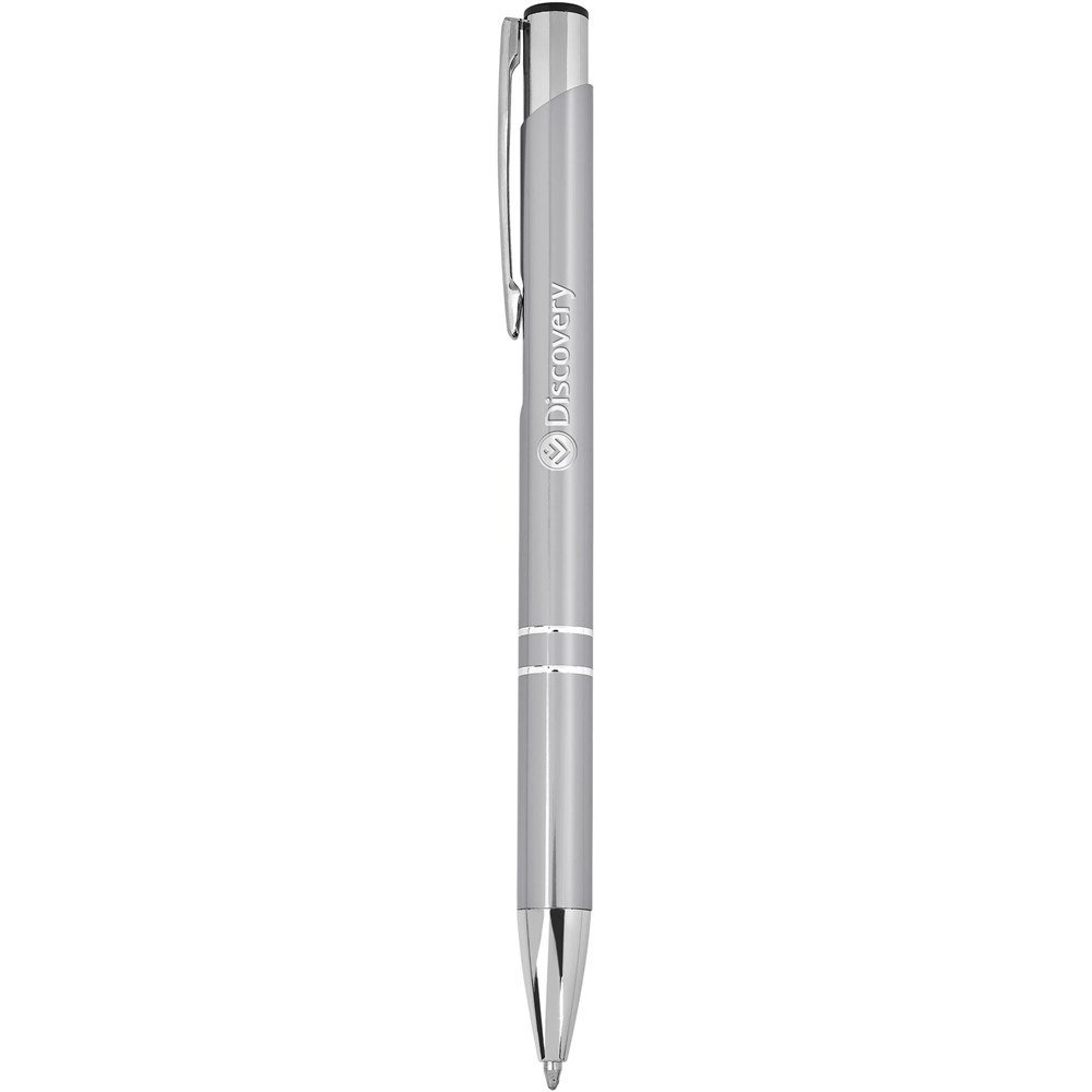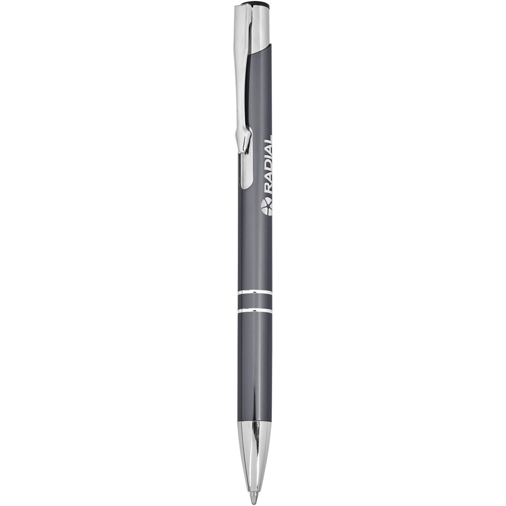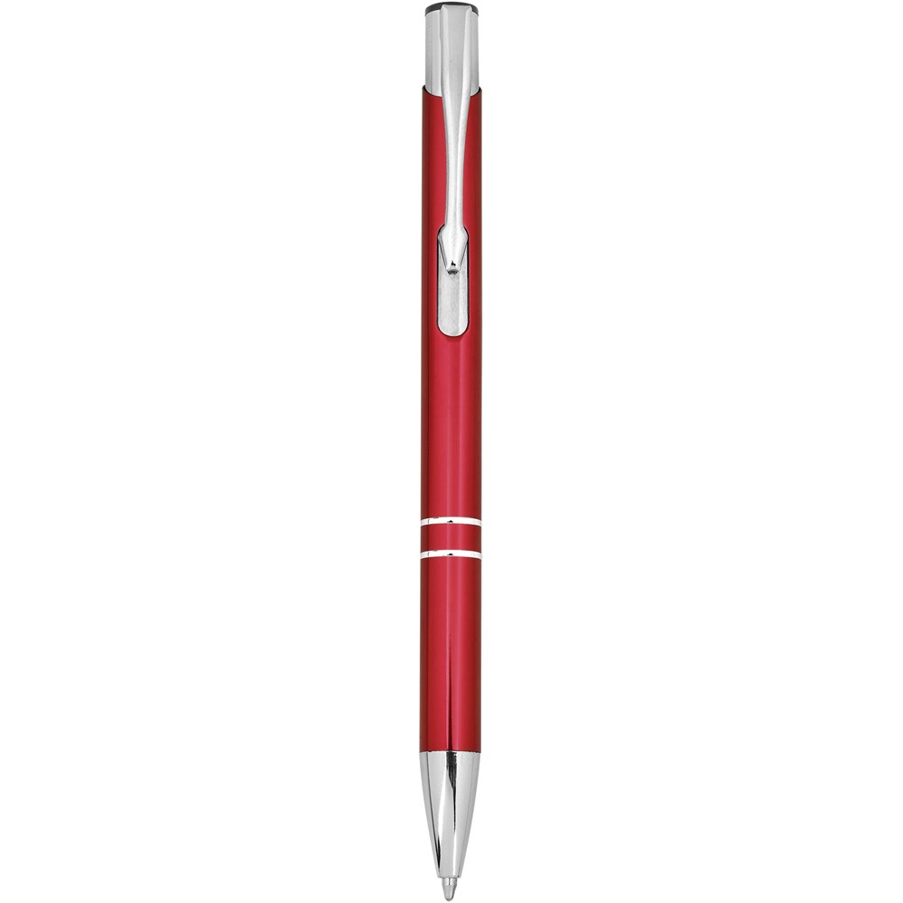 Retractable aluminium ball pen with a shiny anodised, coloured barrel and shiny chrome accents. It contains a good quality German black ink refill, with a writing distance of 1,500 metres.