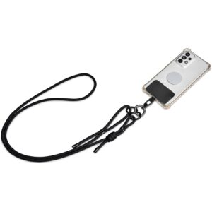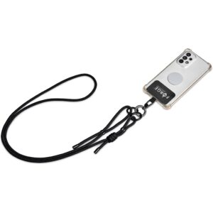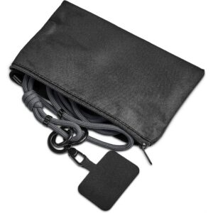 Phone straps have become a popular way to not only carry a phone, but also to help prevent dropping or misplacing it. The patch fits between the phone and a phone case, with a loop popping out of the charger port opening of the case. The loop can then be attached to the clip of the adjustable strap. By adjusting the length of the strap, you can choose to wear it as a crossbody strap, a shoulder strap or a neck strap. It can also be used as bag strap, by removing the clip and the patch, and then connecting the two remaining clips to a bag which is fitted with D-rings. The microfibre pouch provides attractive packaging, while also serving as a useful item for keeping odds and ends together, such as cards, keys and cables.