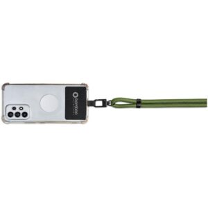 Phone straps have become a popular way to not only carry a phone, but also to help prevent dropping or misplacing it. The patch fits between the phone and a phone case, with a loop popping out of the charger port opening of the case. The loop can then be attached to the clip of the adjustable cord. By adjusting the length of the cord, you can choose to wear it as a crossbody strap, a shoulder strap or a neck strap.