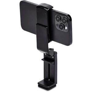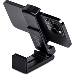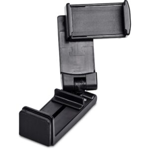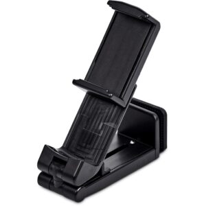 This innovative and versatile phone stand can be used in multiple ways and positions. The flexible phone bracket will securely hold phones of varying size. The bottom bracket is also adjustable, to be attached to a desk or table. It’s especially useful when flying, as it can be attached to your seat tray, whether the tray is up or down. The bracket and arm can also be adjusted to various positions and angles.
