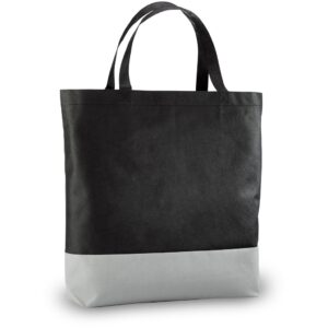 This non-woven shopper has a grey base, with a top panel designed to display your branded logo or message prominently.