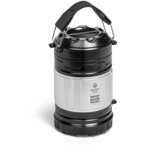You won’t get caught in the dark if you keep this clever item handy. It has an interchangeable carry handle and features both a COB LED pop-up lantern and a flashlight.