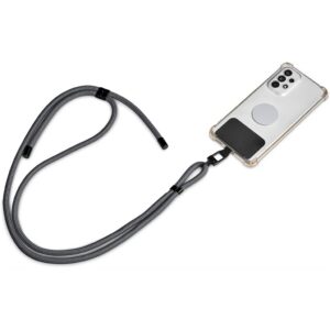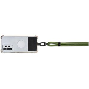 Phone straps have become a popular way to not only carry a phone, but also to help prevent dropping or misplacing it. The patch fits between the phone and a phone case, with a loop popping out of the charger port opening of the case. The loop can then be attached to the clip of the adjustable cord. By adjusting the length of the cord, you can choose to wear it as a crossbody strap, a shoulder strap or a neck strap.