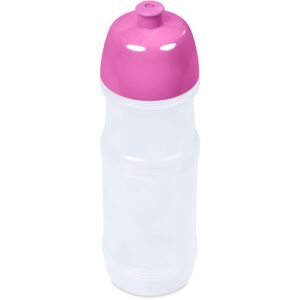 Designed to fit securely into the bottle bracket of a bicycle, this squeezable plastic water bottle is also suitable for sport and the gym, and for everyday use.