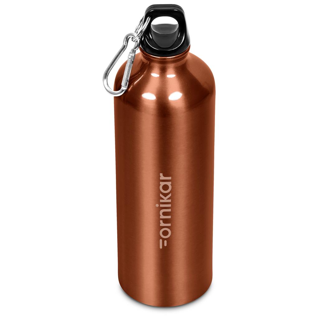 Made from lightweight and clean, BPA-free aluminium, this bottle offers extensive branding opportunities for your logo or message. It features a screw lid with a finger loop and a carabiner attachment, allowing you to clip it on to your backpack.