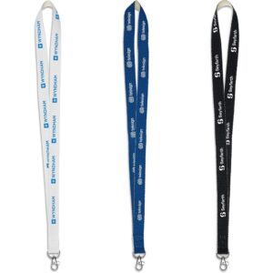 If you’d like to go sustainable for your next conference or event then you could consider this sustainable lanyard, which is made from recycled single-use plastic bottles. The lanyard is fitted with a snap hoop clip, and features a velcro safety release closure. The inner layer of the lanyard is a natural colour, and has a small recycled logo printed in a colour to match the outer layer.
