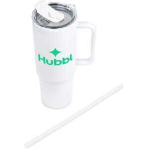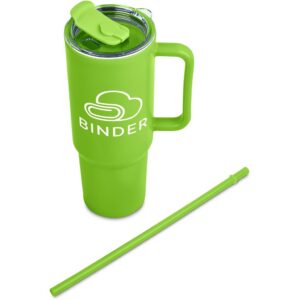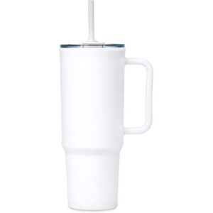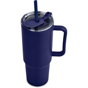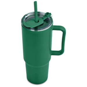 The jumbo size of this mug makes it easy to stay hydrated without having to refill too frequently. Use the straw for cold drinks or sip through the lid for hot drinks. The BPA-free plastic, double-wall construction will keep liquids hotter or colder for longer than a regular mug, and the ergonomic handle makes it easy and comfortable to use, and to carry. The base is designed to fit snugly into the cup holder of a car.