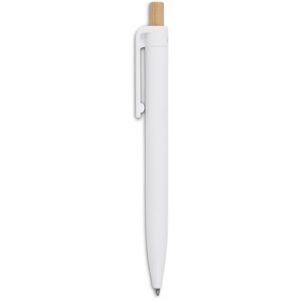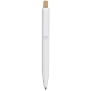 The body of this ball pen is made from recycled plastic. The pusher is made from sustainable bamboo, which provides a pleasant contrast to the glossy finish of the rest of the pen. A small recycled logo is printed at the top of the back of the barrel, but the majority of the barrel is open for the branding of your logo or message.