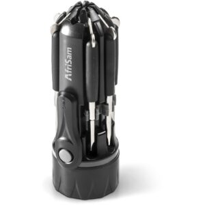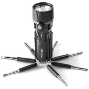 A handy promotional item for any event or occasion. Features 8 functions: on/off button- One click for flashlight, two clicks for tool light.: white LED light : 3 x AAA batteries included.