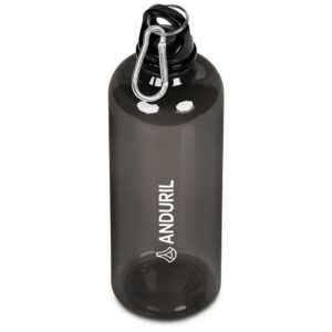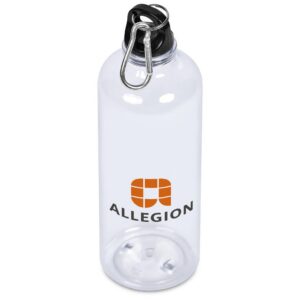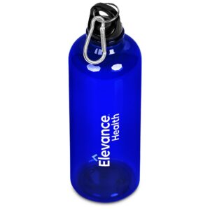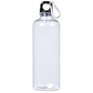 The body of this popular promotional bottle model is made from BPA-free, food grade recycled single-use plastic. It’s lightweight and easy to carry, and you can clip it on to your bag with the carabiner attachment on the lid.