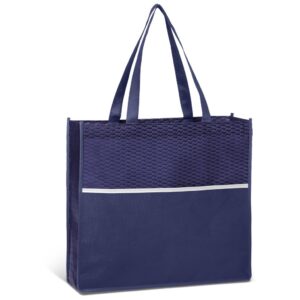 A simple non-woven shopper is uplifted by the cheerful patterned top panel, with a plain bottom panel for branding of your logo or message.