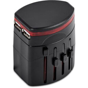 All-in-one USB and AC adapter that will work in over 150 countries. Charge notebooks, smartphones, and other devices worldwide. USB & AC . FCC certification.