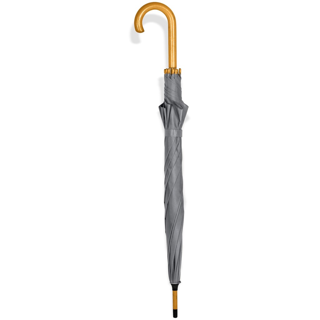 Stay dry in style with this classic design, auto-open umbrella with a wooden shaft and handle.