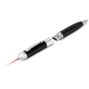A 3-in-1 pen which enables you to store your files and presentations on the flash drive, and features a pen and a laser pointer.