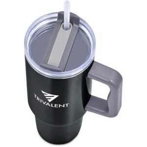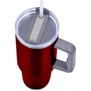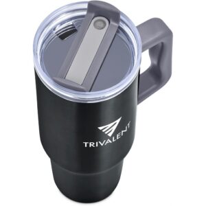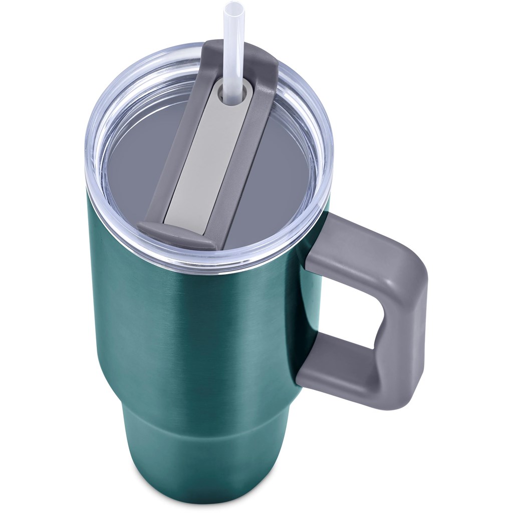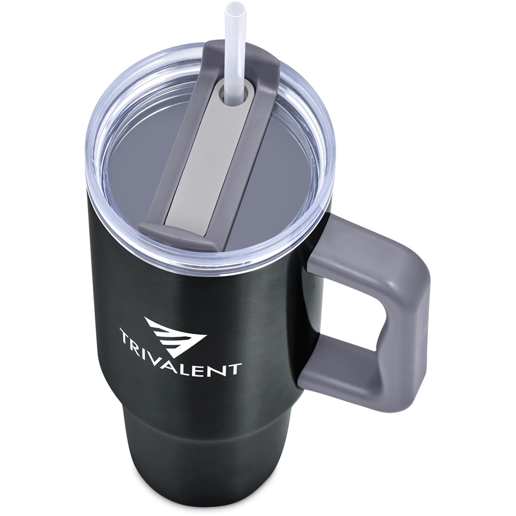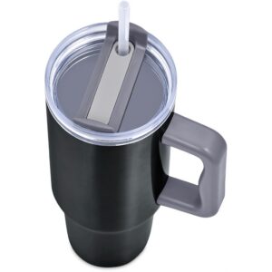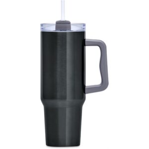 Designed for hot or cold drinks, this substantial mug will preserve the temperature of the liquid inside it for hours on end. The comfortable handle makes the mug easy to hold and carry, and it has a sturdy, tapered base, which fits into the cup holder of a car. The double-threaded screw lid can be applied for left or right-handed drinking. Use the straw for cold drinks or sip through the lid for hot drinks.