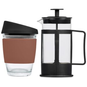 Make yourself a fresh cup of coffee with this glass coffee tumbler and plunger set.