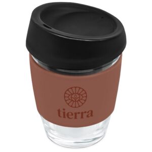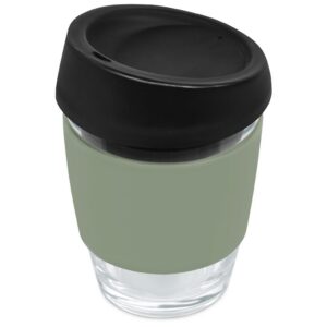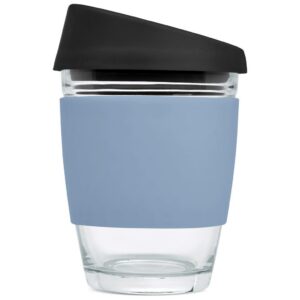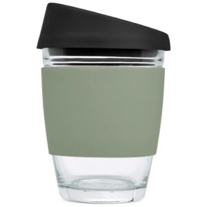 Made from strong borosilicate glass, this is a reusable alternative to single-use coffee cups. The silicone band will insulate your hand from the hot beverage inside the cup. The black silicone lid has a comfortable feel to the lips and a flow design that makes sipping your favourite hot beverage on the go an easy and pleasurable experience.