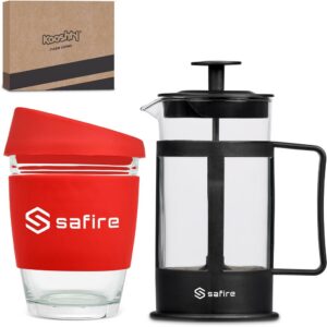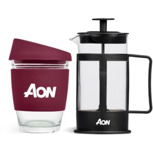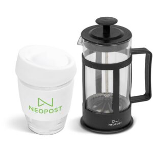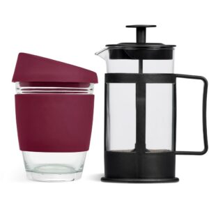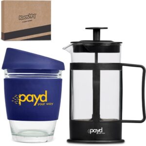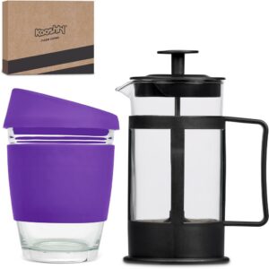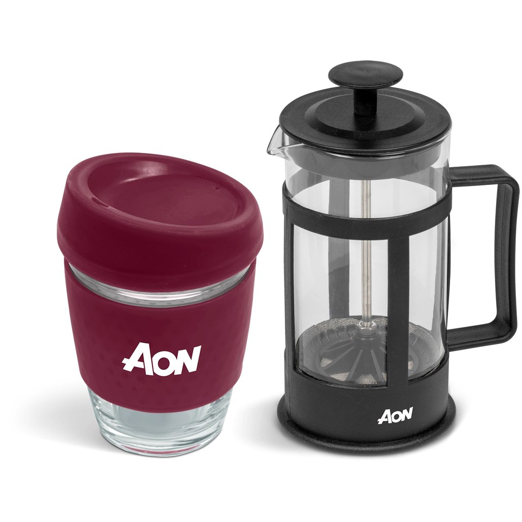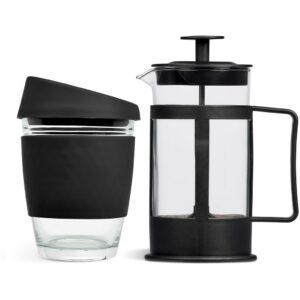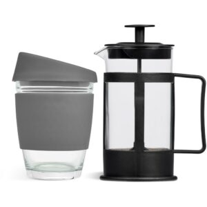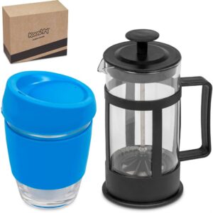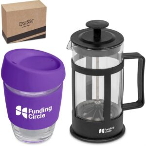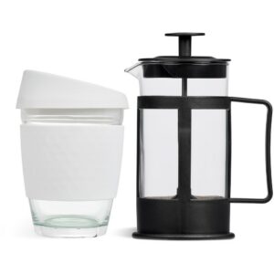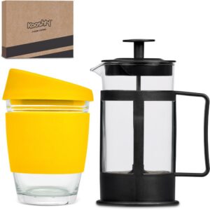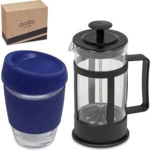 This set contains a 350ml borosilicate glass coffee plunger and a 340ml Kooshty Kup, packaged in a refreshingly bright and cheerful gift box.