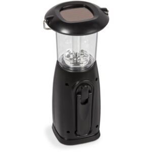 With the ability to recharge via a solar panel or kinetic-crank, the eco-friendly luminescence lantern is ideal for all your outdoor night time activities. Includes: outdoor solar panel that extends battery life , a crank handle that generates kinetic energy to power up light, white 6-LED light, metal carry handle, on/off button.