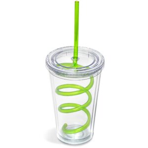 Brighten up your day with this fun tumbler! The spiraling twisty straw is designed to keep you cheerful throughout the year while the double-wall design keeps your drink cool for longer and reduces condensation on the outside of the tumbler.