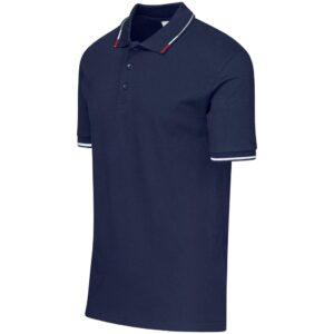 - the collar features tri-colour details