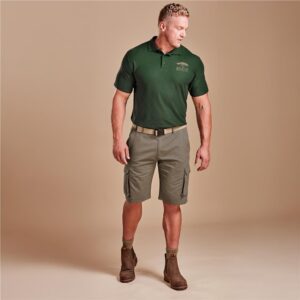 - two back pockets with button down flap