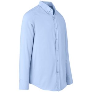 button-down collar • back yoke with box pleat • adjustable cuffs • curved hem