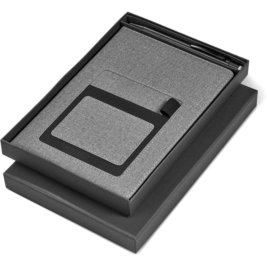One of our most popular notebooks: now available combined with a metal ballpen in a 2-piece presentation box.