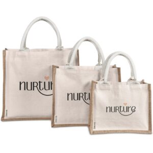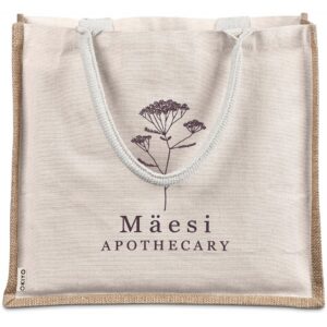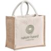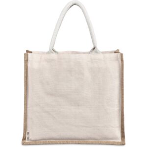 A strong and durable, large bag made from natural materials. The textured jute side panels provide an attractive contrast to the smoother cotton main panels, which can be branded with your logo or message.